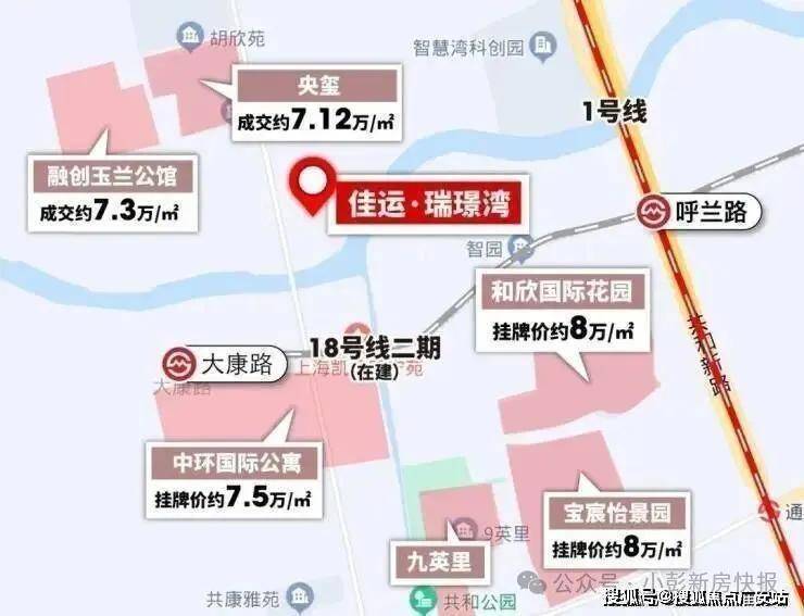 项目距离18号线二期大康路站(在建)直线约760米,未来可步行至站点。