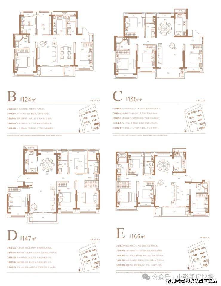 而佳运·瑞璟湾做出了差异化,为改善型群体开了一扇久违的“窗”,户型涵盖建筑面积约100㎡3房2卫、124㎡4房2卫、135㎡4房2卫、147㎡4房2卫,165㎡4房3卫。