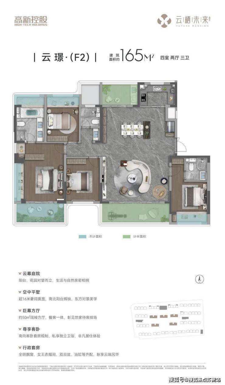 高实得率改善精装四房主城难得约125-165㎡全四房改善洋房,以洋房高得房率为基底,叠享空中花园+飘窗(全赠送)、南北双阳台(半赠送)等多维不计容空间,以最高超100%有效空间增值,重新定义改善型居住标准。