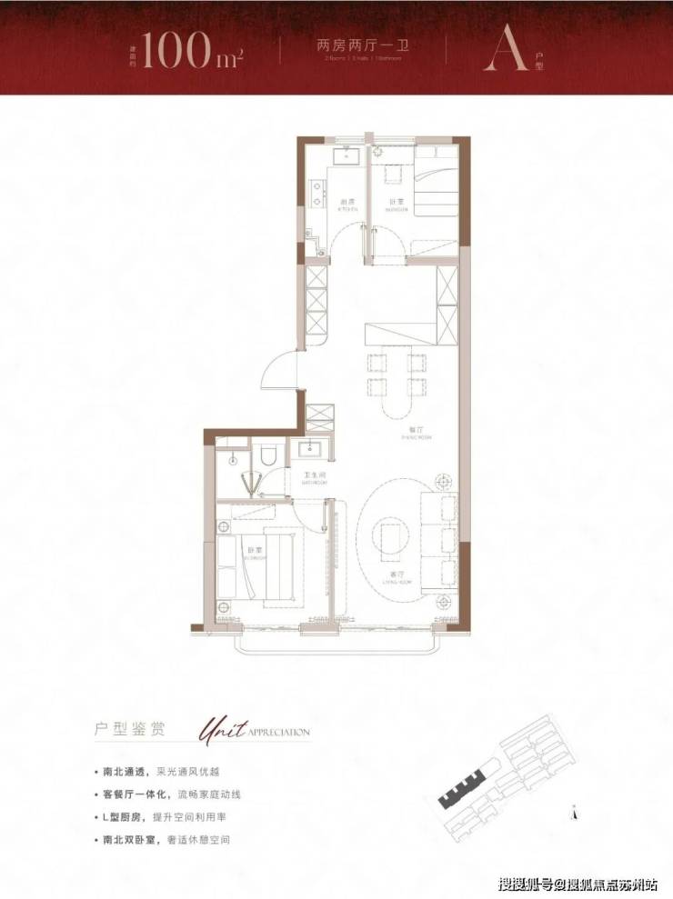 建面约100m²大2房户型,带来的不仅是方正的布局,也为购房者带来了体验感超绝的视野和采光。