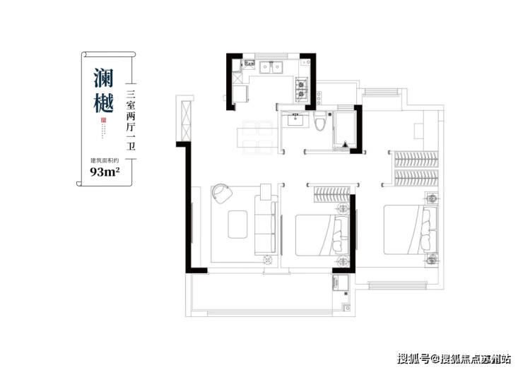 约93㎡澜樾户型 三室两厅一卫