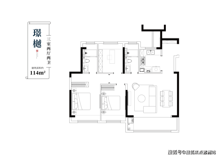 约114㎡璟樾户型 三室两厅两卫
