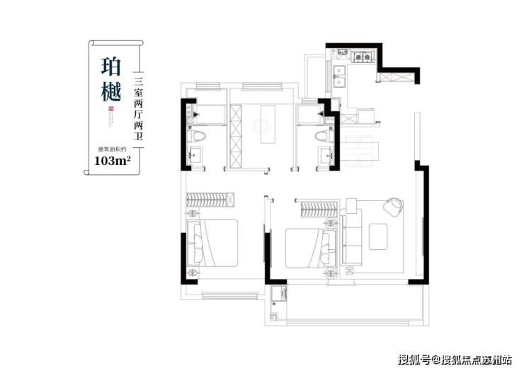 约103㎡珀樾户型 三室两厅两卫