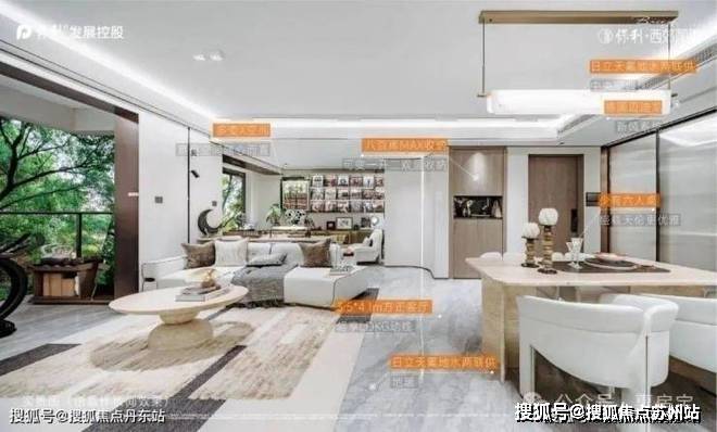 阳台外窗采用大面积窗墙比,使得室内整体采光面、亮度、通风效果得到提升。全墙纸交标结合整幅岩板客厅景墙,以定制设计感提升空间立体感。餐厅空间相当阔绰,可放置四人桌或六人桌,尺度之大在400万级产品中非常难得一见。