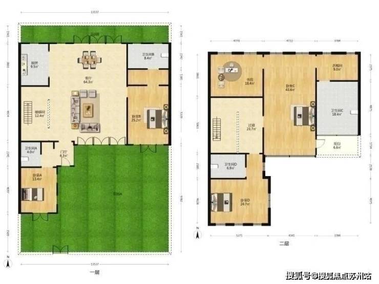 花园:南入户,水庭院,花园约110平米
