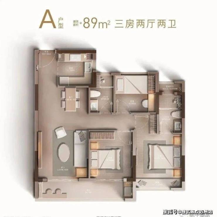 建筑面积约89㎡户型做到三房两厅两卫,三开间朝南,主卧还配有独立卫生间。南向建筑约6.4米阳台。还有开放式的餐客厅一体化设计,舒适宽敞。崇文栖云府开发商电话☎:400-678-8669接通后输入1111【售楼处已认证】