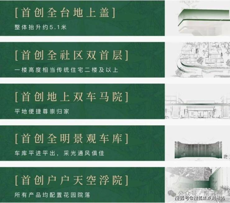 以苏州园林为蓝本,根植崧泽文化源脉,打造五进雅正园林:一进双境车马院-二进下沉庭院-三进连廊环绕-四进宅间花园-五进私家宅院。