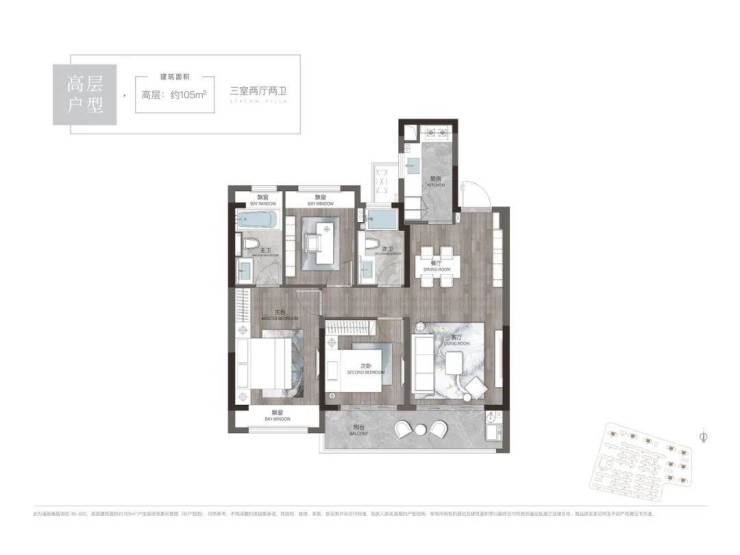 高层105㎡、120㎡户型,设计紧凑,总价门槛更友好。