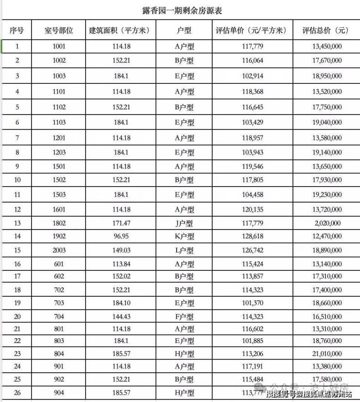 馥公馆一房一价表如下
