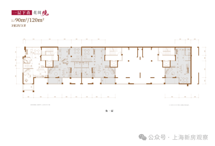 项目主打3层的超低密洋房产品,另有3套联排产品,户型类型丰富;洋房为创新的多层退台式洋房,层高高于传统常规洋房产品,3.3-3.6m层高对标别墅产品层高。