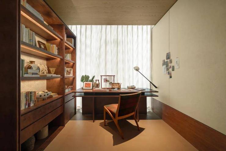 要想品质生活,一个可以用来安心阅读或释放天性爱好的空间必不可少!在左岸中心质奢新所的打造下:整面墙的陈列架、舒适的手扶椅、简约的边桌,光线正好,舒适且放松!