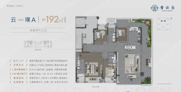 空中庭院,把别墅生活搬上楼:这是青云台最大的亮点!采用创新的阶梯式露台设计,最大能赠送约54㎡的空中庭院。您可以在这里烧烤聚餐、种花养草,实现“宅园合一”的诗意梦想,这是普通阳台根本无法比拟的体验。
