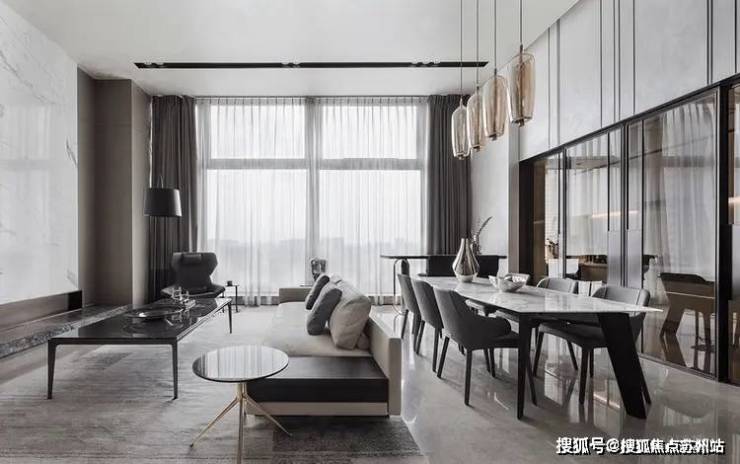 整体简约的现代主义风格令人安怡,沉稳温丽的色调下,线条利落有致,格局清晰,结构性强,空间质感不言而喻。