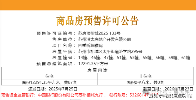 最新动态!相城四季听澜雅院第六批取证,均价29810元/平