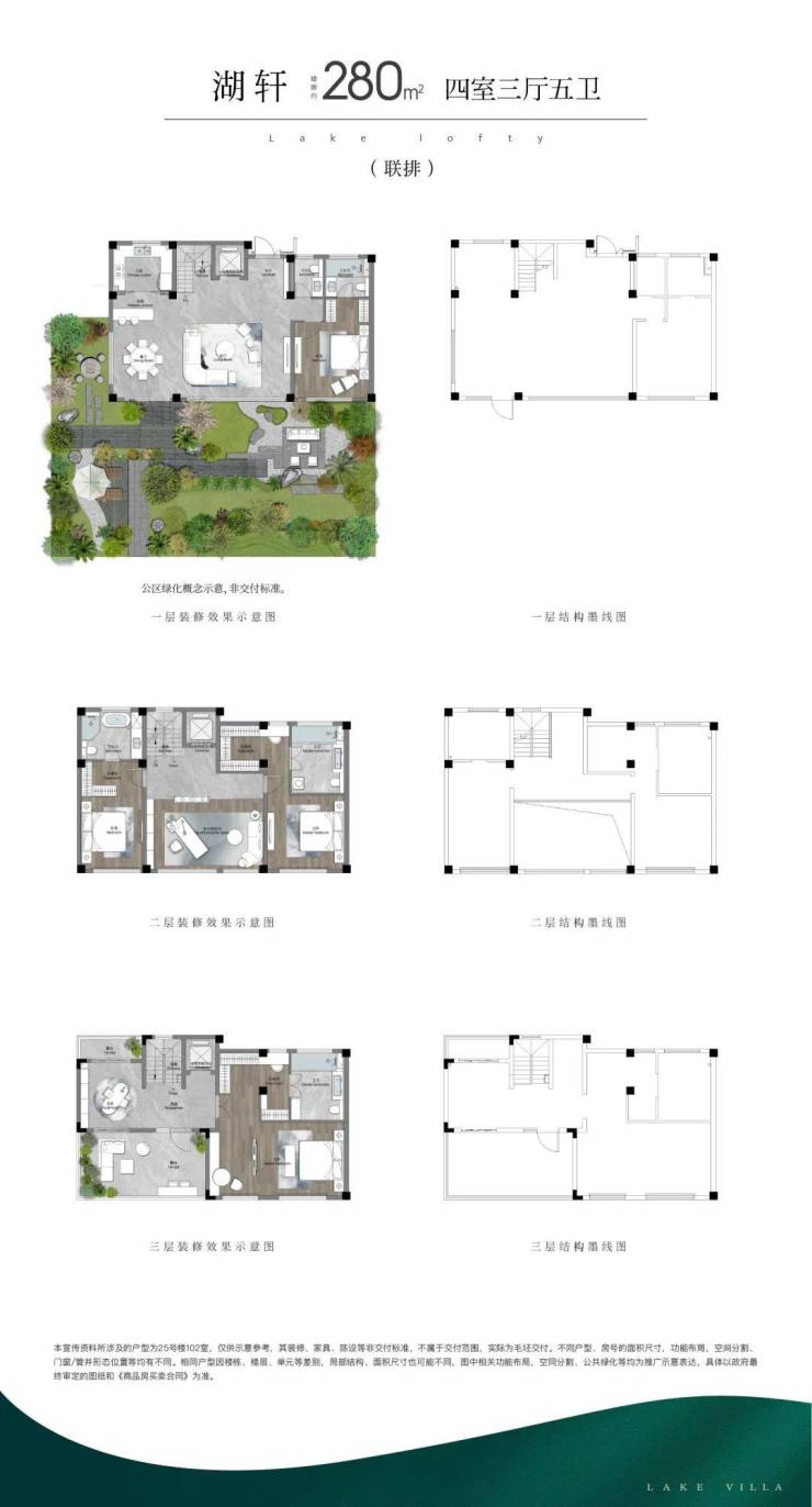 【一脉园区心,圆满湖与墅】 近园区,建面约150-280㎡高端湖居院墅,容积率仅1.1,绿化率30%,整个社区只有398户,非常纯粹安静。产品包括约246-280㎡的联排别墅、约155-175㎡的叠墅,以及约150-200㎡的精装洋房。洋房带精装修,叠墅和联排是毛坯交付,给你更大的发挥空间。
