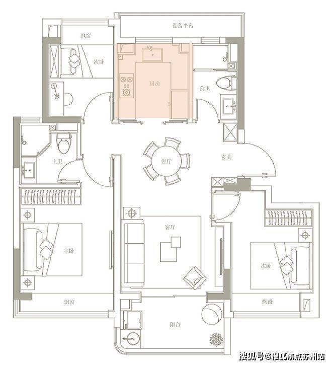 92㎡3房2厅2卫虽然是小户型,但空间利用在线、尺度感超强!
