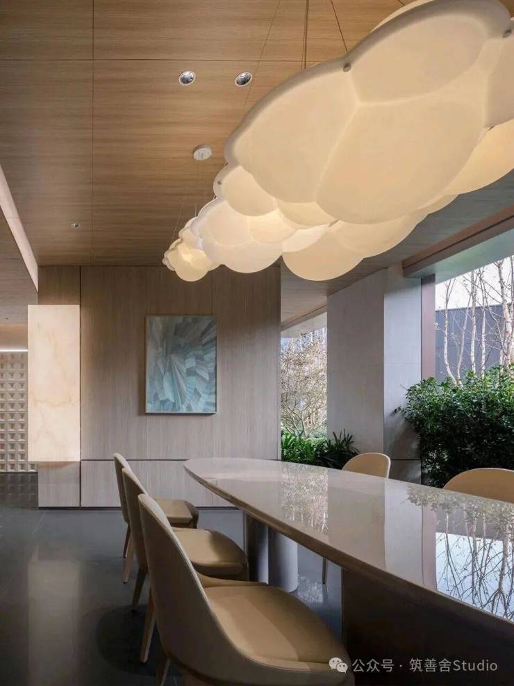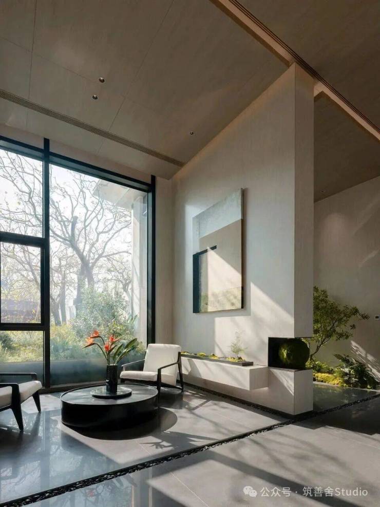 外立面融合铝板与石材,搭配600mm宽挑檐及大窗墙比设计,兼具耐久性与美学。以“少即是多”的静奢风格,辅以三玻两腔玻璃,实现颜值与静谧的完美平衡。