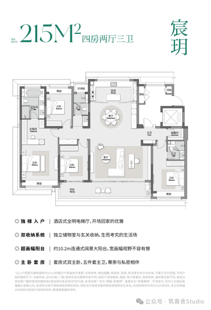 项目容积率1.7,规划11栋13-17F的小高层,约40-65米超宽楼间距布局,保障日照充沛与视野无遮挡。建筑面积约165-225㎡的园意平邸,以超越常规的空间格局,重新定义“奢适”新境界。在追求均好性与南向开间的极致尺度中,不仅打造理想居所,更前瞻性地规划了两代同堂的理想生活模式:家人之间既保有恰到好处的独立空间,又能实现朝夕可及的温情共处。