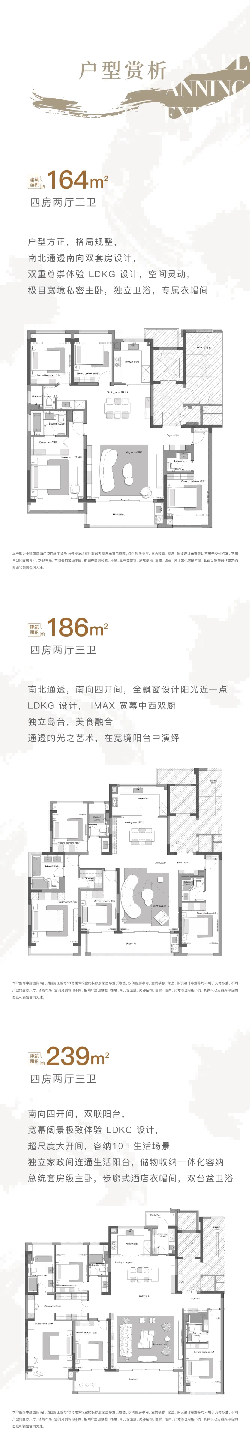 目前首开的是7、8、10、11、12栋,产品就是建面约164㎡、186㎡、239㎡的大四房,全部是精装修交付,装修标准在3000-6000元/㎡,品质看得见。
