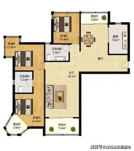 建面:149.11㎡:三房两厅二卫