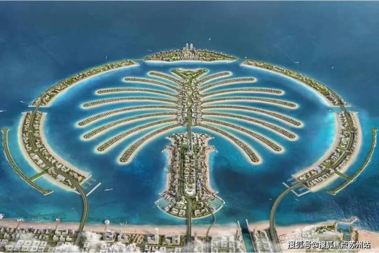 这个项目与迪拜棕榈岛甚至有相似之处,两条内部规划道路为主轴和车行道路,联排别墅如棕榈叶一般舒展开来。