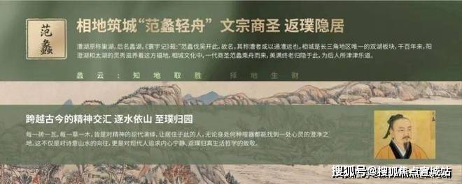 项目位于苏州相城区,地处长三角地区唯一双湖板块。在相城文化中,一代商圣范蠡乘舟而来,美满终老归隐于此。基于相城深厚的在地文化,旭辉建管提取“范蠡泛舟”融入自然语境中,以跨越古今的精神交汇,以现代化的手法演绎,不仅表达了对诗意山水的向往,更是对现代人追求内心宁静、返璞归真生活哲学的回应。