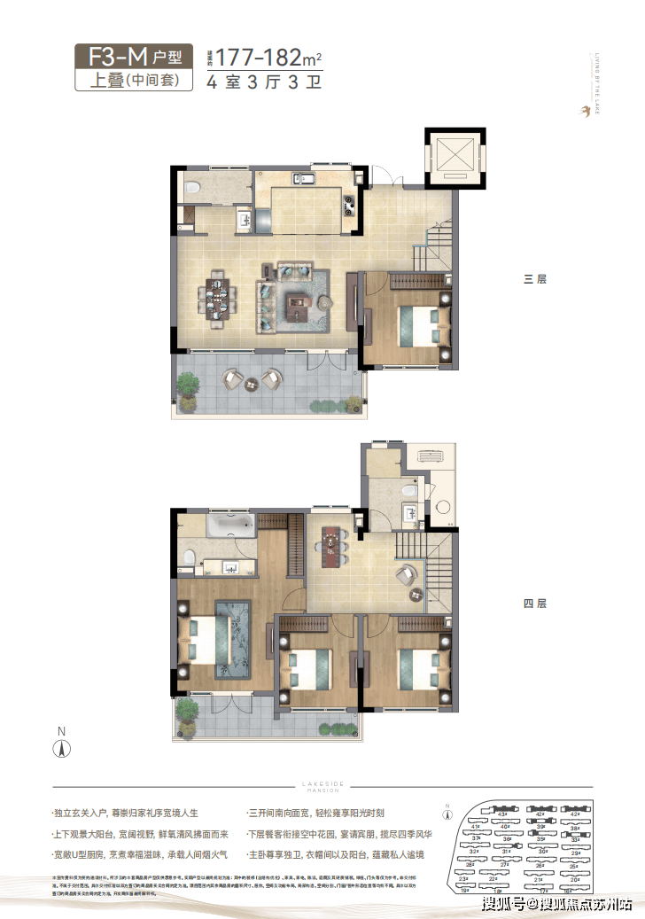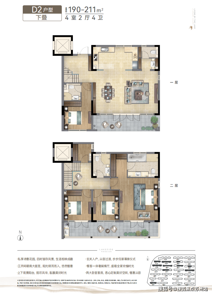 春风湖滨的产品设计独具匠心,中式叠院和新亚洲洋房各具特色。中式叠院融合了苏州园林、海派建筑精髓,通过退台设计营造更大的露台、阳台空间;多层次立体庭院,犹如空中花园,塑造中国花园式美好范本,真正实现户户有景观、家家有园林。