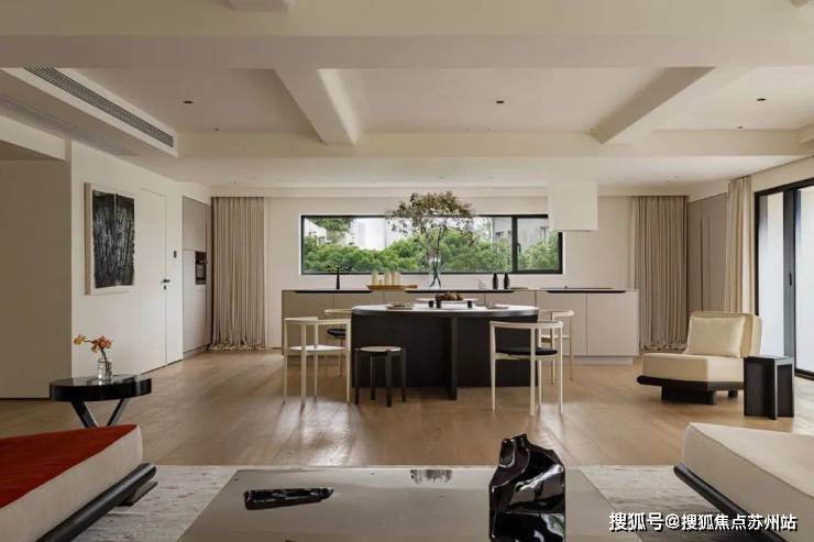 藏家公馆的室内设计,理应延续建筑本身的极简主义与原始肌理。因此,大量选用米灰色石材、砂岩、洞石等自然材料,与棉麻织物、木质家具彼此融合,呈现出一种不动声色的质感语言,描绘出低调克制的生活美学。