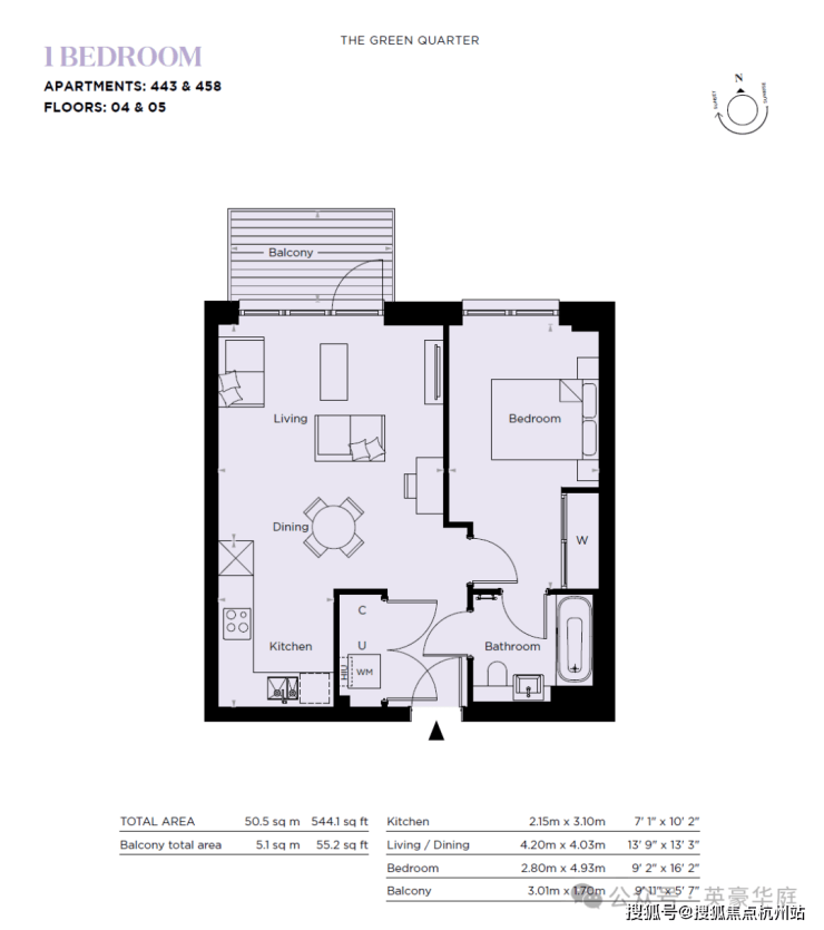 阳台面积:51平方英尺/4.9平方米
