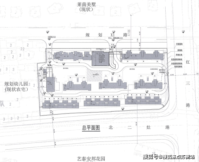 规划红线用于界定建设用地法定边界的标识,通常通过用地角点的城市坐标参数,或参照周边现有建筑物的距离尺寸标定,红线内为项目可建设范围,红线外为市政公共区域,不得擅自占用。