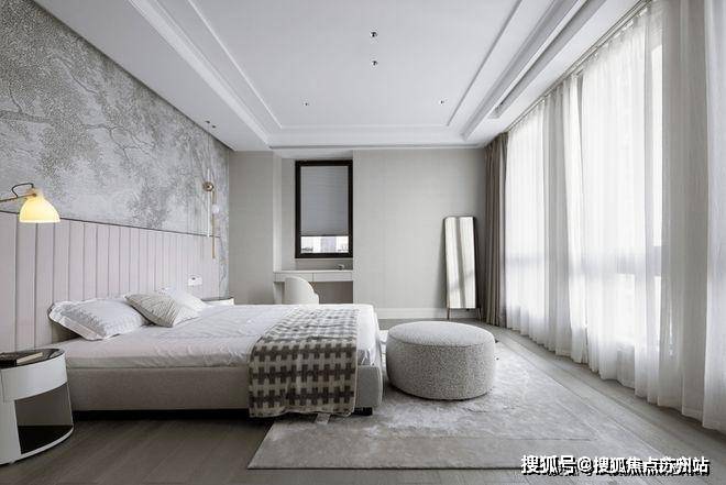 主卧室运用素色当主题,巧妙进行设计层面的良好衔接。在梳妆台和墙体标准融合下,构造更静谧祥和的多功能空间。