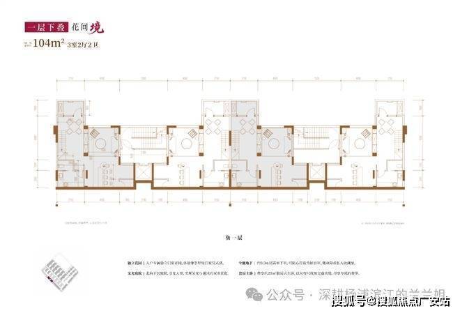 建面约104㎡3房2厅2卫(一层下叠)