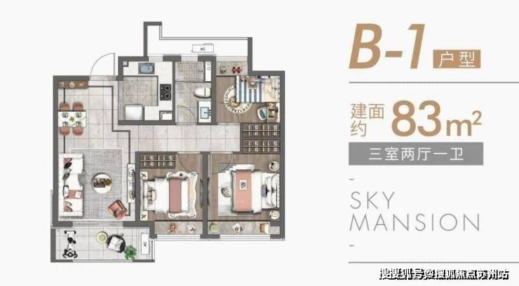 上海宝山天铂建面约83~89㎡朗阔三居全能户型,动静分离,静谧舒适,每1cm的考究,都映射着每一个人居的诉求。