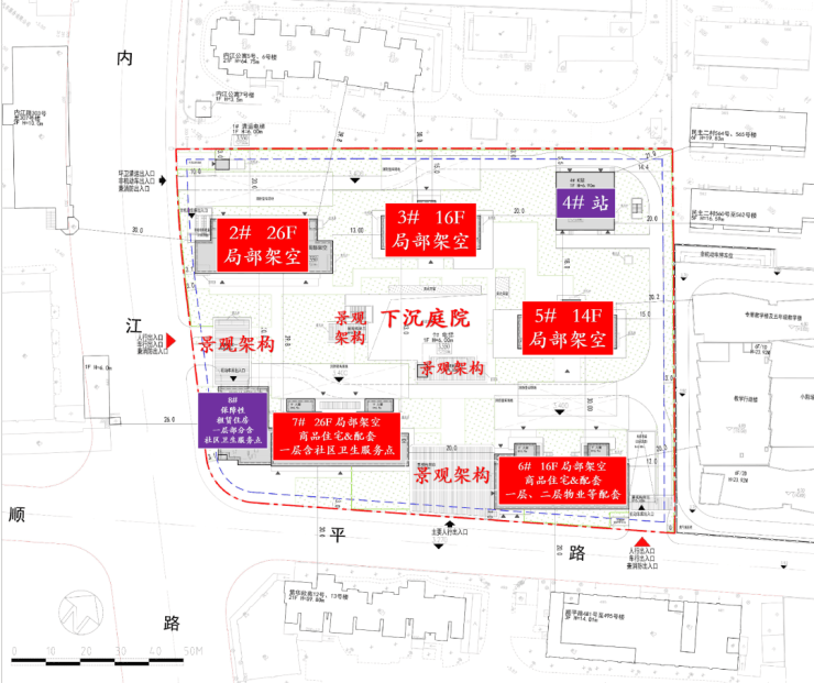 根据规划图所知,项目拟建5栋14-26F住宅产品,以及1栋保障性租赁用房;