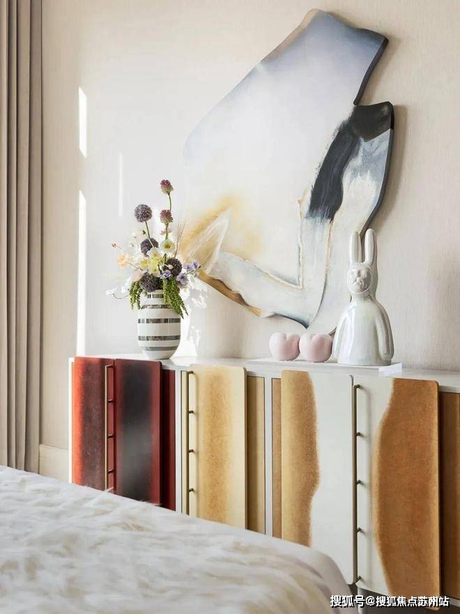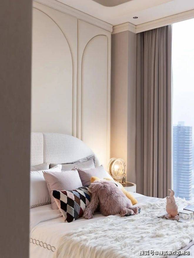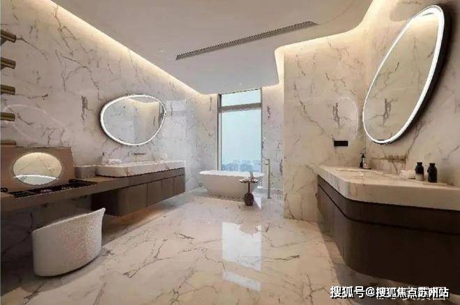 大尺度的高效利用,也让EIC大平层呈现出更多超越此前的空间享受。南向三个套房,24米的开间,停得下4辆加长林肯。进入主卧,罕见的主卫双开门设计,比一般人的主卧都要大,鱼肚白通顶,劳芬捷仕满配,甚至连公卫都是劳芬智能马桶,在这里泡澡,根本不用考虑窗帘。