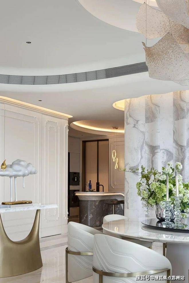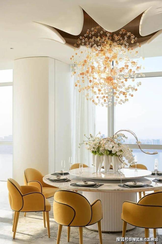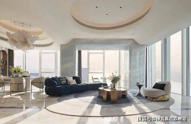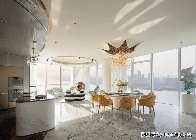 福斯特的顶级豪宅设计经验与顶级酒店设计王者HBA的奢华体验,碰撞出全新灵感,尽呈登峰造极的顶豪E户型样板间。眼前尽是壮阔景象,客、餐、厨一体设计,呈现比排球场还大的无界奢厅,大气卓越。它以大岛台为枢纽,营造硅谷精英式的社交生活,也尽可满足名流酒会、家族宴会,亦或是董事会议的临时场所。