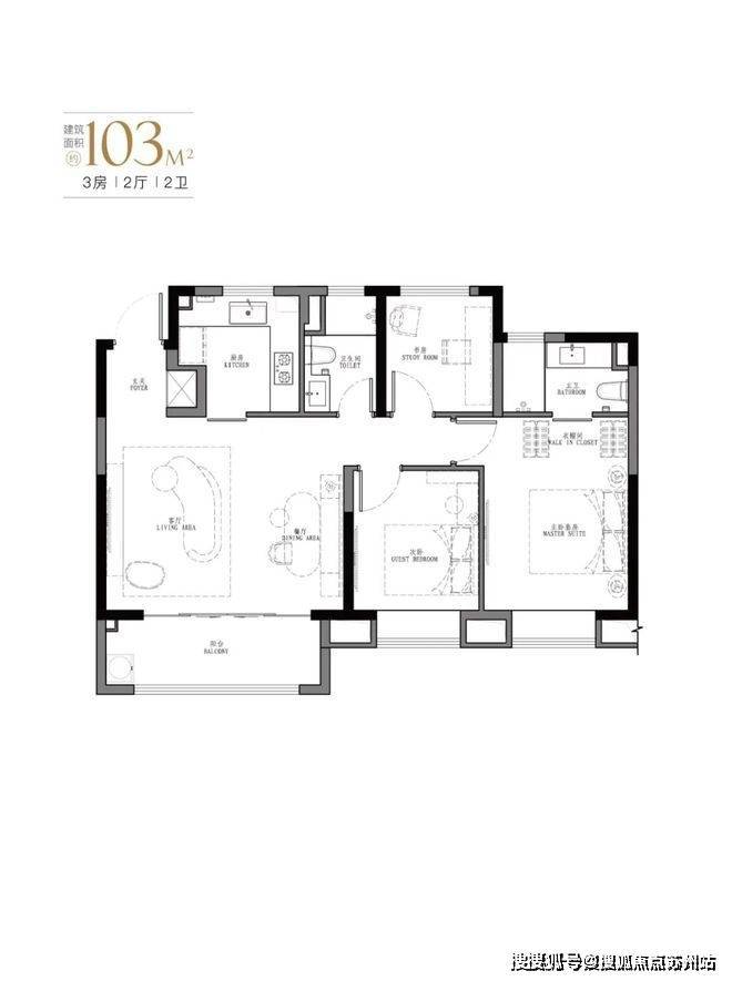 产品:103㎡、107㎡的三房两厅两卫及123㎡、129㎡的四房两厅两卫。