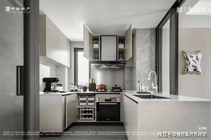 项目特意打造了半开放式的厨房。在做中餐时可以紧密闭合,避免油烟走出,这种厨房形式,不仅可以实现厨房、客厅、餐厅(BLDK)一体化