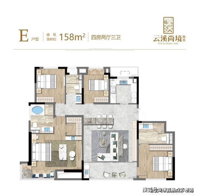 179㎡4房2厅3卫户型——近15.7米超大面宽,三代同堂毫无压力