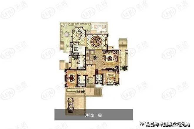B户型:622.76平地上395.41+地下227.35