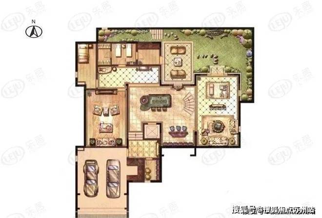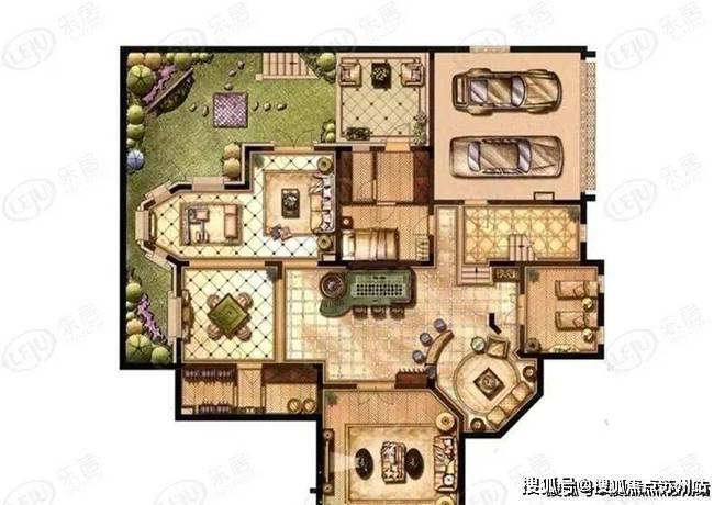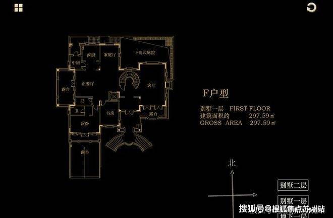 F户型:748.88平地上492.59+地下256.29