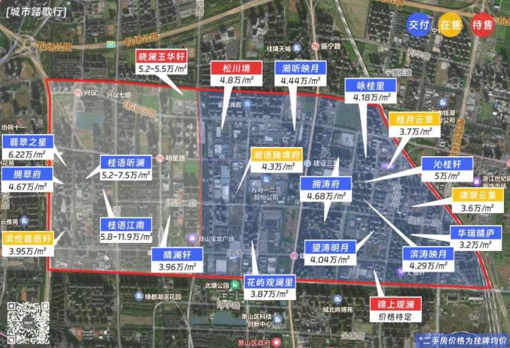 曾经的市北东,滨江和绿城几乎包揽了整个板块,拥潮府、拥涛府、滨涛望月、望涛月明、桂语江南、桂语听澜、桂语江南、咏桂里,如今这些房源都构成了实打实的存量房源,不完全统计,二手房源超过1万套。