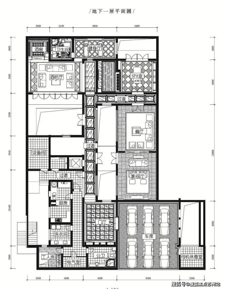 为避免园内现代交通与古典园林的冲突,拙政别墅将车行路放置地下,主人通过地下车库大堂直达府中,最大程度上保证了居住者的安全性与私密性。阳光经过独特设计的花窗被引入地下动线,旧日苏式园林“深宅大院”的繁华记忆在这里被重新寻回。拙政别墅私属内庭院背西朝东,而厅堂坐北朝南。苏州位于东南季带,此种朝向的U子型摆布,保证冬季采光与夏季通风。