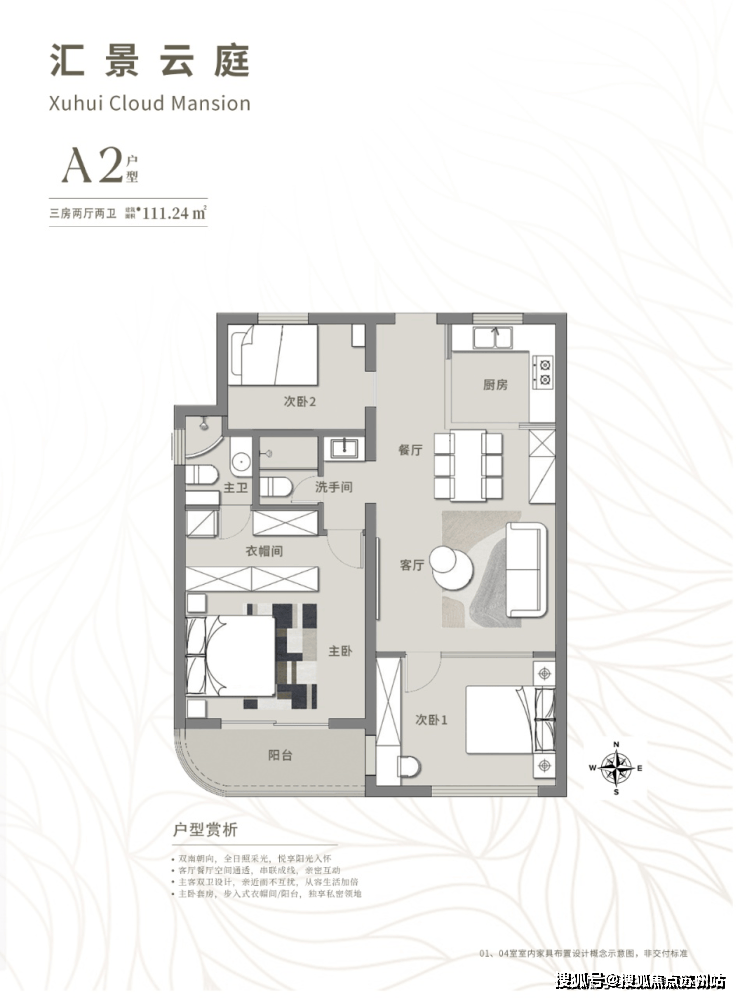 朝向:两南一北户型正,全日照采光,悦享阳光入怀