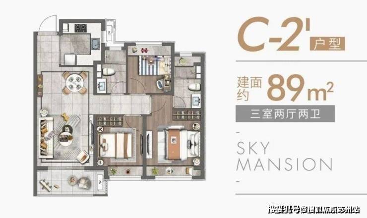 上海宝山天铂建面约83~89㎡朗阔三居全能户型,动静分离,静谧舒适,每1cm的考究,都映射着每一个人居的诉求。