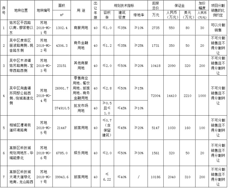 3月7日,苏地网挂[2018]1号土拍公告在苏州国土资源局官网挂出。根据公告,本次土拍共计出让7宗纯商业地块,于4月9日开拍。