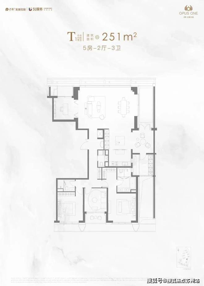 建面约239㎡边套,采用L型转角落地窗,打造了270°环幕瞰江视野。