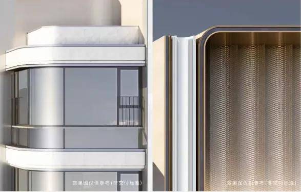 全球先锋地标皆以科幻艺术感的弧形曲线设计,无论弧形鎏金塔冠、弧形辊轮铝板、弧形转角玻璃,【大华·静安年华】建筑采用曲线弧形设计弧形,亦致敬了吴同文住宅的流线之弧