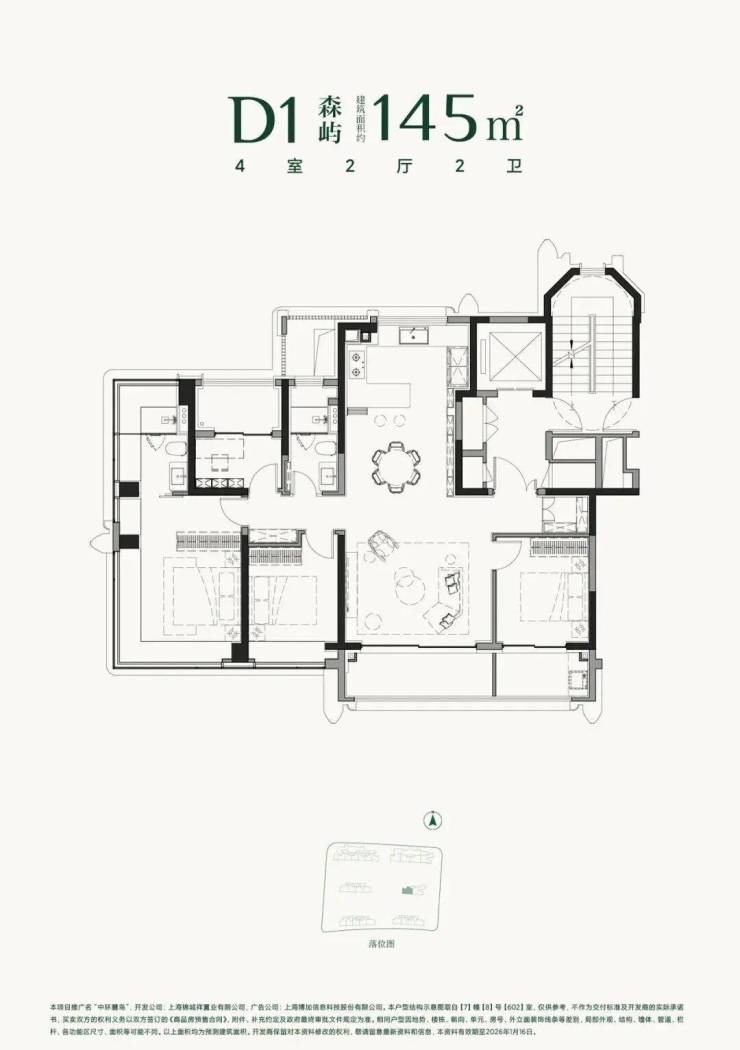约145㎡户型实得率约97%,多出约15㎡实用面积,相当于多出了一间房;