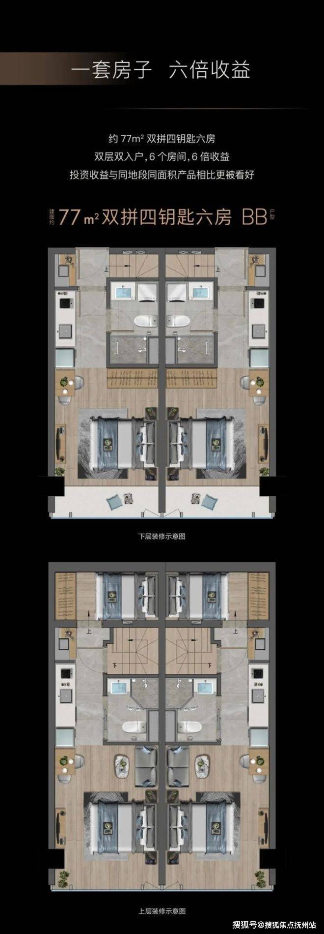 约77/85㎡ 4.79米四房两厅两卫跃墅